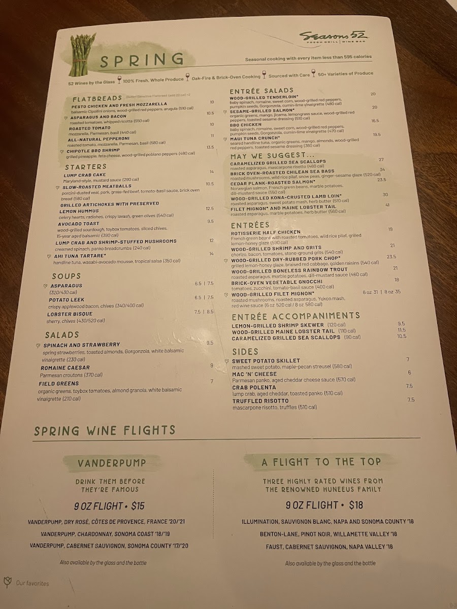Guest reviews consistently praise the attentive service and warm ambiance, making it an ideal choice for celebrations or casual outings alike. Dishes such as the truffle risotto and perfectly prepared lamb showcase the restaurant's commitment to culinary craftsmanship. The combination of exquisite flavors and inviting surroundings ensures that every visit to Seasons 52 is a remarkable journey for the senses.